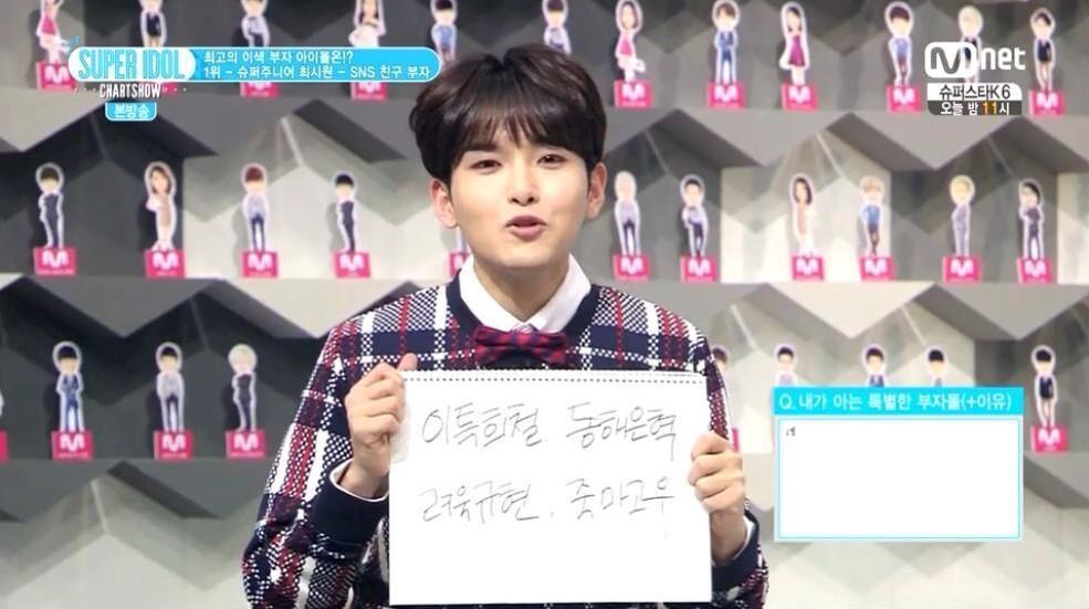 - طُلب من ريووك كتابة 4 كلمات بعبارة ، كتب : ليتوك هيتشول ، دونغهي ايونهيوك ، ريووك كيوهيون ، أحبة الطفولة ريووك قام بكتابة ذلك لأن جميعهم بنفس عمر الصداقة