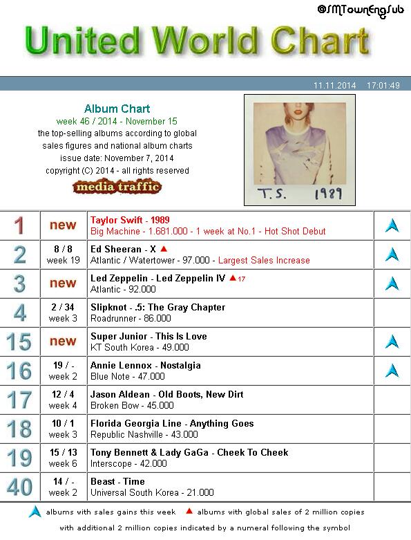 - في قائمة مبيعات الالبومات العالميه البوم سوبرجونيور "This Is Love"يحتل المرتبه 15بأكثر من 49,000 نسخة