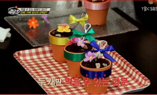 - كيوهيون كان عليه الاختيار من بين الثلاثة الألوان المختلفة , هو اختار الزرقاء ,خسر ,الازرق هو وعاء خاطئ ,هو قال " لكنه لون الإلف "