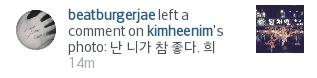 - تعليق Beatburger Shim Jaewon على تحديث هيتشول في انستا: