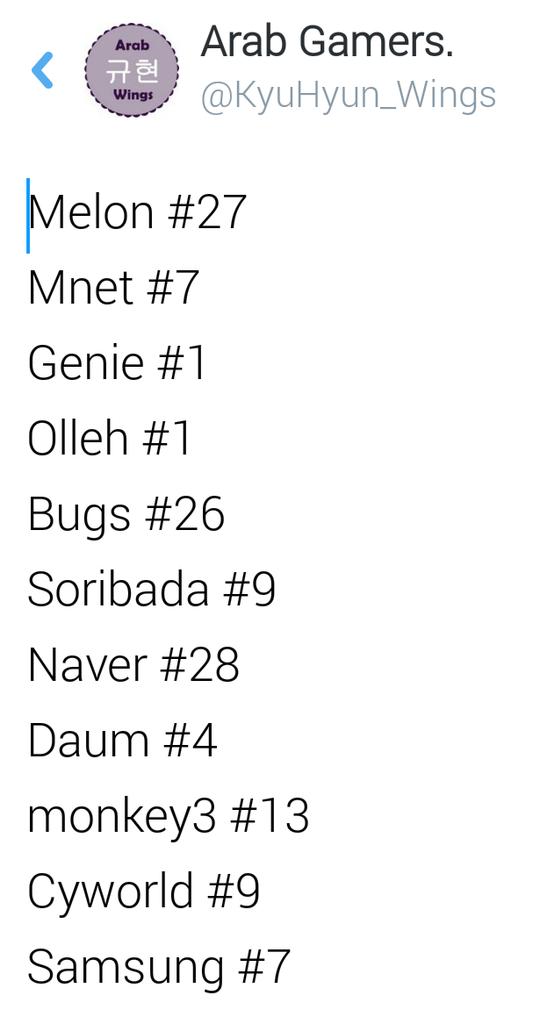 - اغنية كيوهيون Till I Reach Your Star المركز 36 في مخطط ميلون قبل ساعتين