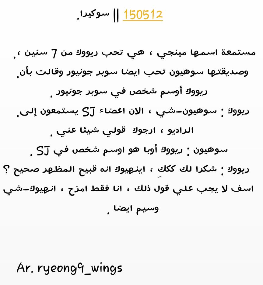 - مستمعة طلبت من ريووك أن يدعو بوا إلى سوكيرا . ووك : سأحاول التحدث معها عن ذلك لاحقا (اذا كان من الممكن أو لا)